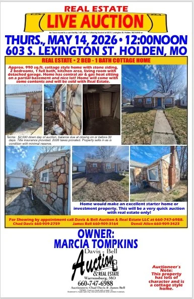 For Showing by appointment call Davis & Bell Auction & Real Estate LLC at: 660-747-6988.